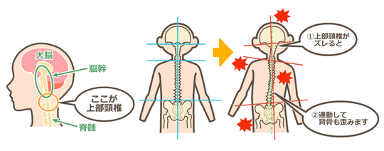 両手で背骨をユラユラ揺らすようにして、背骨のズレはもちろん、補正的な骨のズレまで含んだ骨格全体のズレの的確な調整をすることで、壊れた脳神経伝達システムを修復して、背骨、骨盤、顎関節、頭蓋骨、四肢関節等のバランスまで整える画期的な施術方法です。