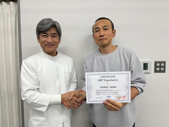 大久保先生は、DRT施術者のメンバー限定で開催される手技セミナーや補講を年間を通して受講され、優秀な成績を収められました。